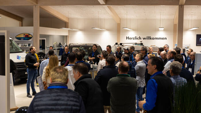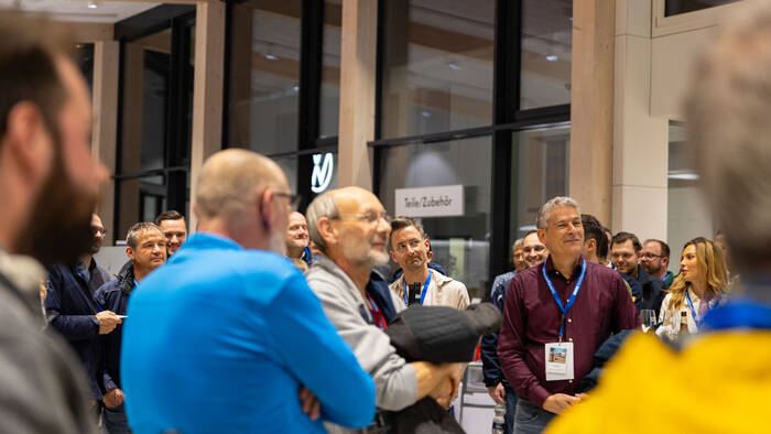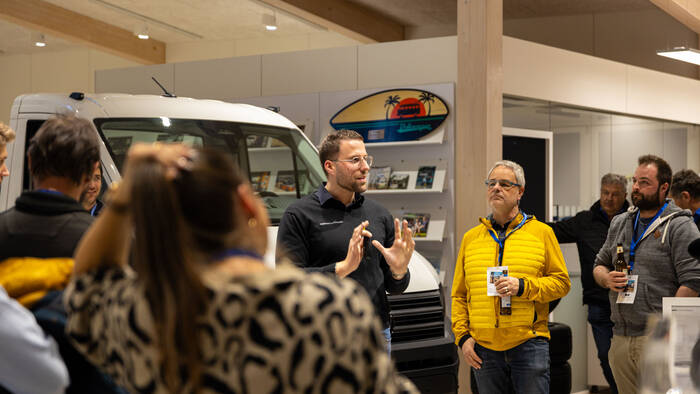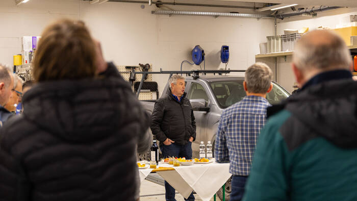 Ergänzt wurde der Rundgang durch kurze Beiträge von Mitarbeitenden und Partnern. Gaetano Cannuscio, Head of Sales der movon AG, sowie Nicola Marchionna, Leiter Nutzfahrzeuge bei HESS, teilten ihre Gedanken und Erfahrungen. Fahrzeuge und Arbeitsmittel konnten direkt vor Ort besichtigt werden. Gespräche ergaben sich ganz nebenbei.