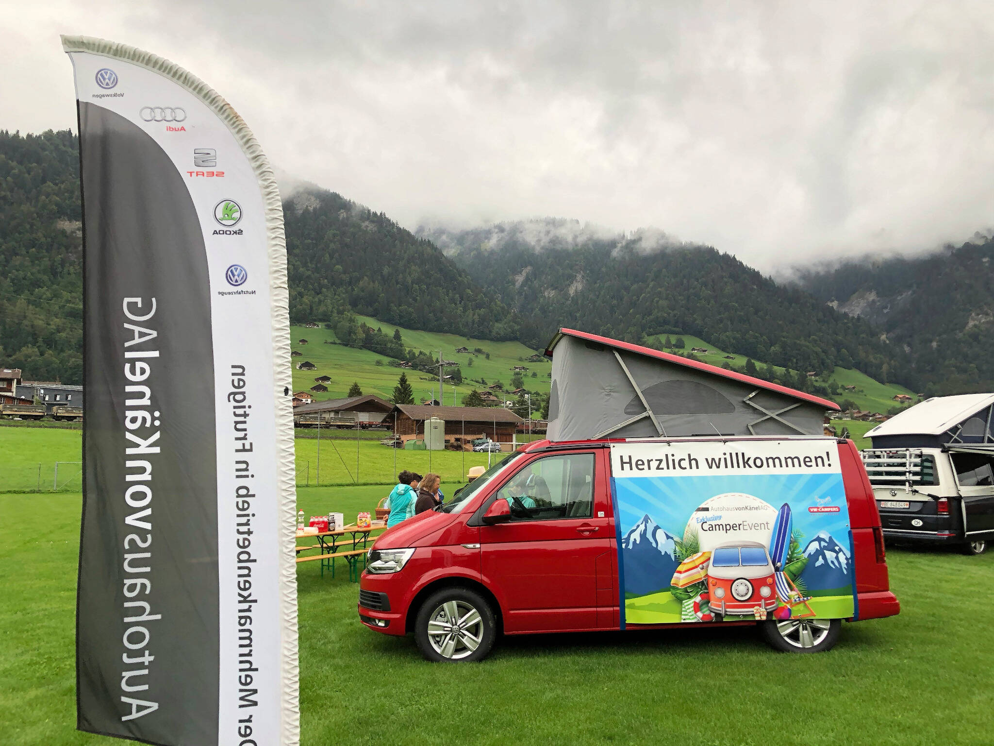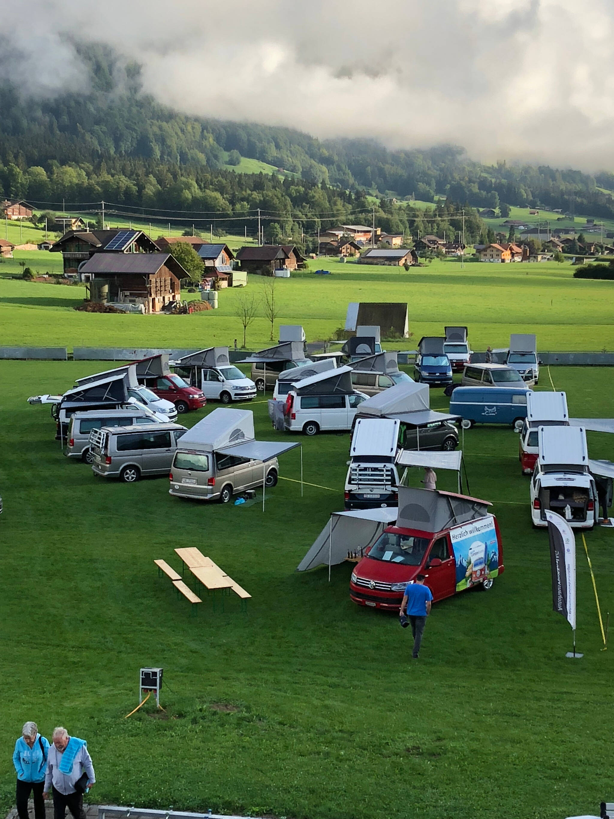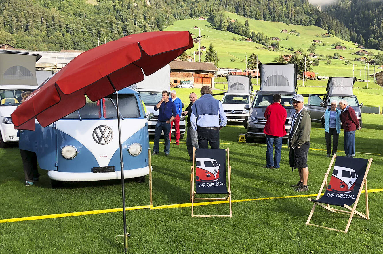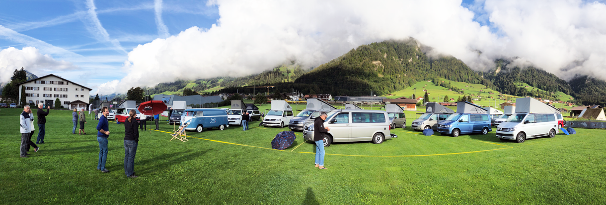 California-Freunde zeichnen sich durch folgende Merkmale aus: dauerhafter Ruhepuls, konstant gute Laune und Freude an allen Facetten der Natur. Schuld daran ist das Campervanvirus. Einmal infiziert, ist Heilung kaum mehr in Sicht. So konnte auch das schlechte Wetter den rund 60 Teilnehmern an unserem California-Event vom 25. und 26. August nichts anhaben. Die Stimmung war ausgelassen und der Erfahrungsaustausch erstreckte sich von handwerklichen Tipps über Reiseberichte bis hin zu mehr oder weniger wahrheitsgetreuem «Campergarn». Aufgrund des unerwartet hohen Ansturms verlegten wir den Anlass auf den neuen Campingplatz beim nahe gelegenen Frutigresort. Diese Lösung war zudem optimal, weil das Frutigresort die Besucher gleich kostenlos die Infrastruktur in seinem Frei- und Hallenbad benutzen liess. Zu den Highlights des Anlasses gehörten die Besichtigung der Camping-Zubehör-Ausstellung in unserem Autohaus und natürlich das gesellige Nachtessen im Frutigresort.