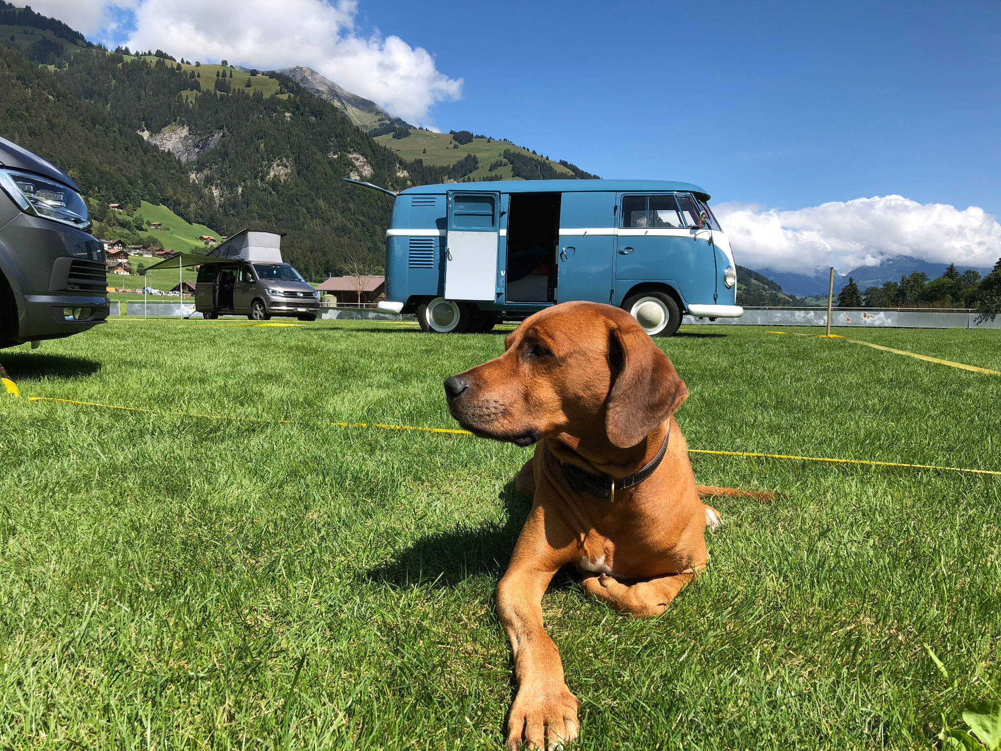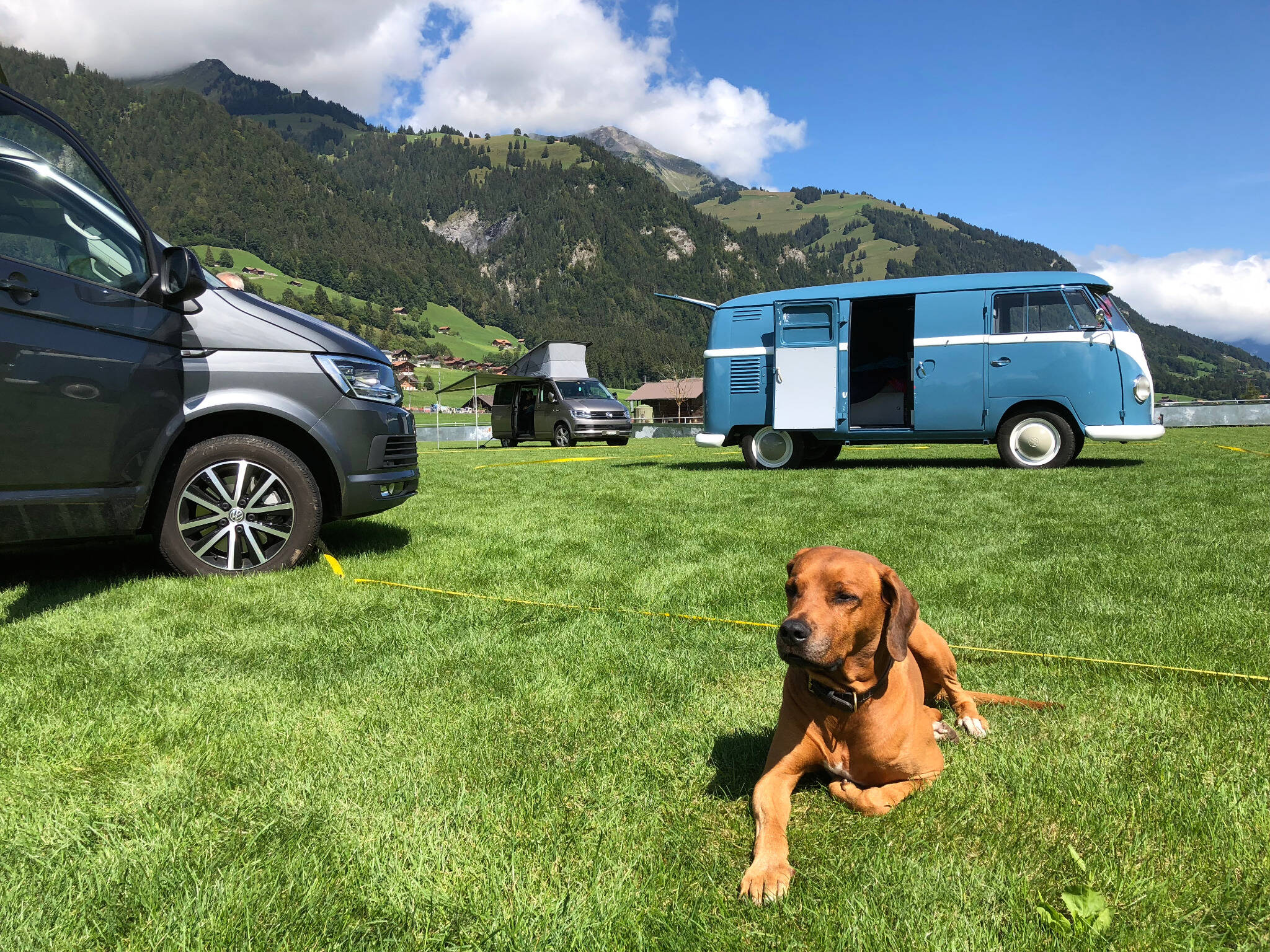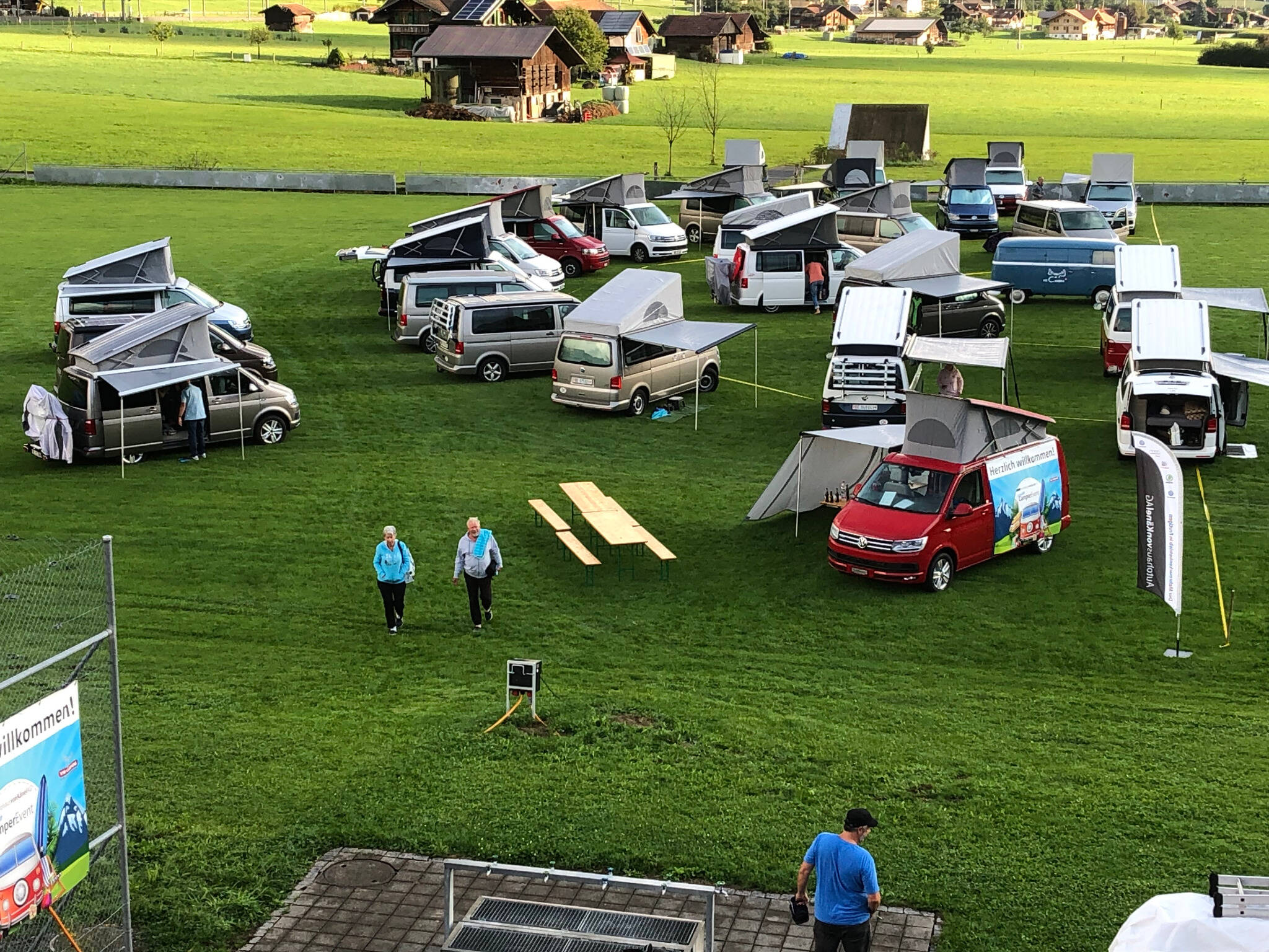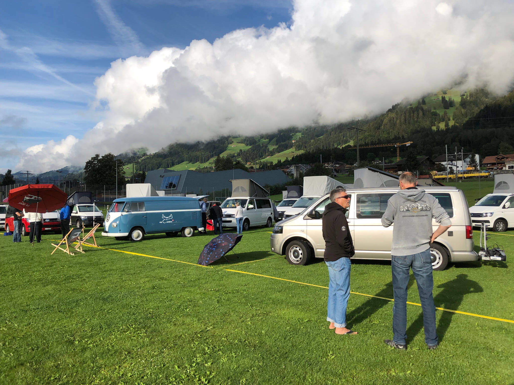 California-Freunde zeichnen sich durch folgende Merkmale aus: dauerhafter Ruhepuls, konstant gute Laune und Freude an allen Facetten der Natur. Schuld daran ist das Campervanvirus. Einmal infiziert, ist Heilung kaum mehr in Sicht. So konnte auch das schlechte Wetter den rund 60 Teilnehmern an unserem California-Event vom 25. und 26. August nichts anhaben. Die Stimmung war ausgelassen und der Erfahrungsaustausch erstreckte sich von handwerklichen Tipps über Reiseberichte bis hin zu mehr oder weniger wahrheitsgetreuem «Campergarn». Aufgrund des unerwartet hohen Ansturms verlegten wir den Anlass auf den neuen Campingplatz beim nahe gelegenen Frutigresort. Diese Lösung war zudem optimal, weil das Frutigresort die Besucher gleich kostenlos die Infrastruktur in seinem Frei- und Hallenbad benutzen liess. Zu den Highlights des Anlasses gehörten die Besichtigung der Camping-Zubehör-Ausstellung in unserem Autohaus und natürlich das gesellige Nachtessen im Frutigresort.